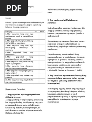 Ang mga pananaw. Malaki ang itinutulong nito sa pag-unlad ng ating sarili o sa kapwa. May pag-unlad kung lumalaki ang GNP at GDP ng isang bansa.