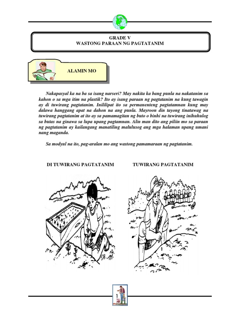 1 Edukasyong Pantahanan at Pangkabuhayan Grade 4 Alternative Delivery Mode Quarter 1 - Modyul 3. Paglilipat o di-tuwirang pagtatanim ito ay mabuting gawin kung nais makatipid sa panahon at maging tuloy tuloy ang paghahalaman. Mga paraan sa pagtatanim ng halaman.