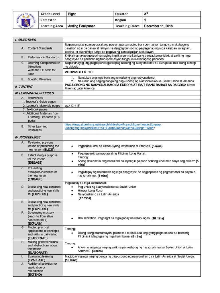 Pag Usbong Ng Nasyonalismo Sa Europa At Iba T Ibang Bahagi Sa Daigdig Pdf