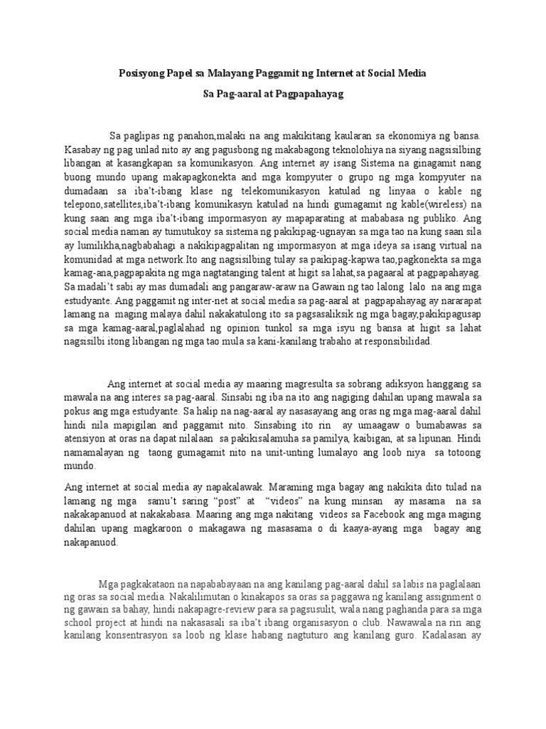 Posisyong Papel Sa Malayang Paggamit Ng Internet At Social Media Pdf