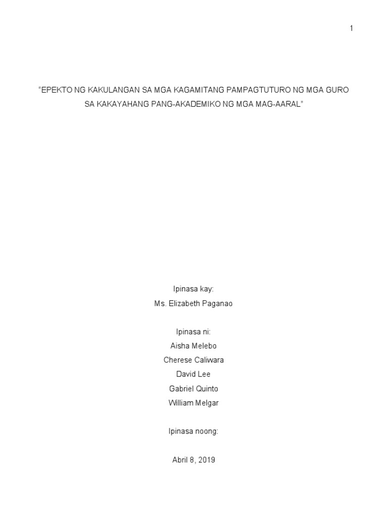 Epekto Ng Kakulangan Sa Mga Kagamitang Pampagtuturo Ng Mga Guro Sa Kakayahang Pang Akademiko Ng Mga Mag Aaral Pdf