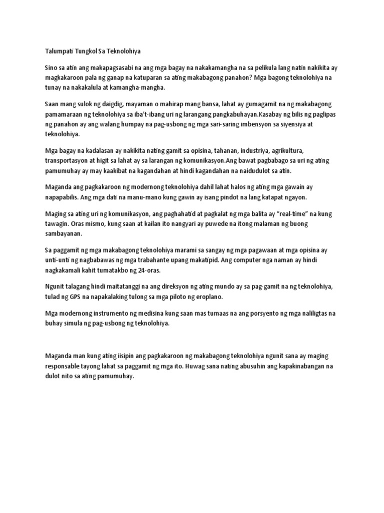 Talumpati Tungkol Sa Teknolohiya Pdf