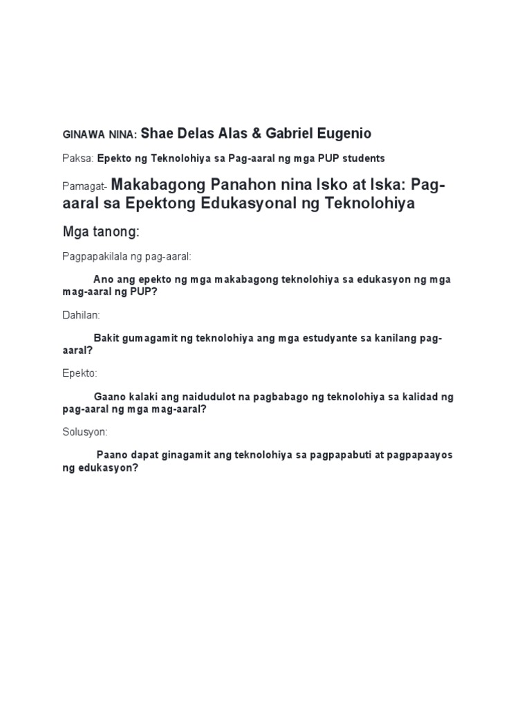 Dahilan kung bakit ang pag-aaral ay nagiging madali at mabisa kaya naman ay napakaraming mag-aaral ang sumasangguni sa teknolohiya para sa kanilang pag-aaral. Thesis sa filipino tungkol sa makabagong teknolohiya. I introduksyon sa pananaliksik teknolohistang pinoy.