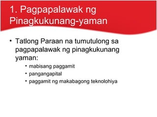 Nagmamay ari ng mga pinagkukunang yaman at salik ng produksiyon ito ay maaring pribado o publiko. Dahil sa neoliberal policies naging pangalawa sa pinakamababa ang paglago ng ekonomiya ng Pilipinas mula 1990 hanggang 2010. At sa mabilis na pagsulong ng teknolohiya ay masasabing nakasasabay na tayo sa kaunlaran at makabagong teknolohiya ng mauunlad na bansa Ang makabagong teknolohiya ay isa ng bahagi ng pang araw-araw na buhay ng isang tao.