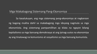 Ano ang mga makabagong sistemang pangekonomiya. Sa pagtatakda ng presyo mahalaga na ito ay sinang-ayunan o. Mga Layuning Pangkabuhayan Mapanatiling buhay ang mga miyembro ng bawat.