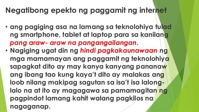 Positibo at negatibong epekto ng makabagong teknolohiya sa mga kabattaan. PAWS believes that the creation of a more peaceful society starts with the widening of. Marami tuloy ang nagtatanong kung dapat bang isisi sa teknolohiya ang unti-unting pagbabago ng pag-uugali ng binansagang pag-asa ng bayan Nakatutulong din naman sa atin ang pagyabong at paglaganap ng teknolohiya sa kasalukuyang panahon dulot ng krisis. Pumapangalawa dito ay hindi ito mainam gamitin kapag walang kuryente 20.